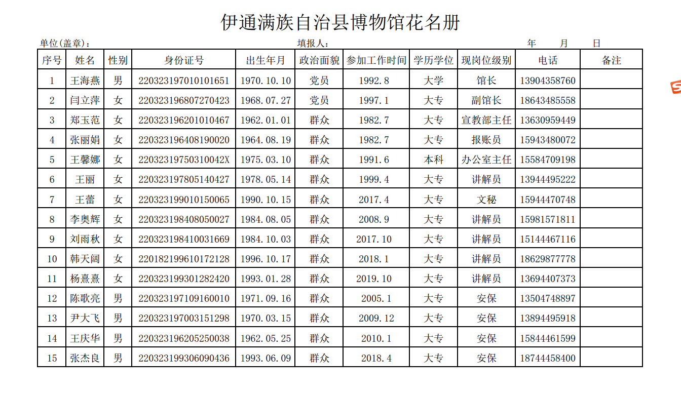 伊通满族自治县博物馆领导班子成员构成